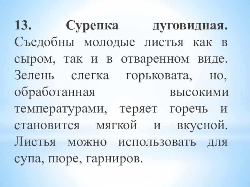 Слайд 4513. Сурепка дуговидная. Съедобны молодые листья как в сыром, так и