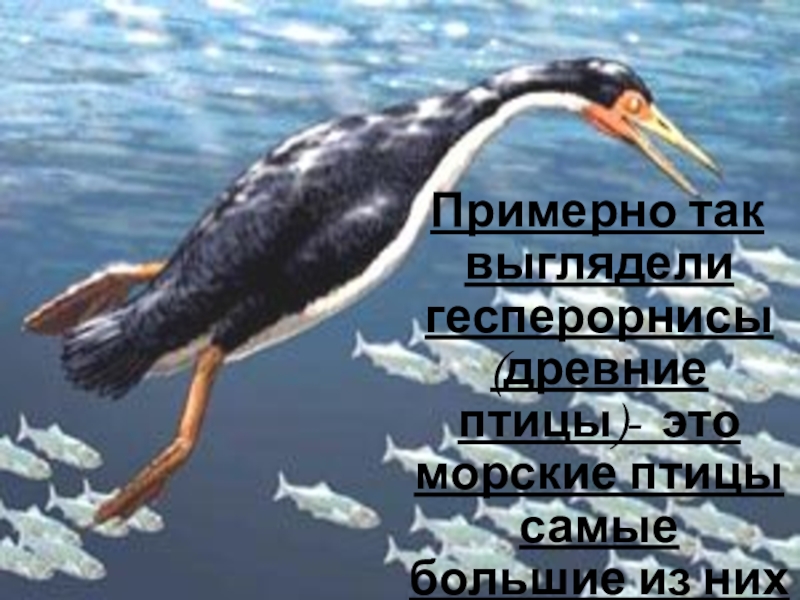 Слайд 10 Примерно так выглядели гесперорнисы (древние птицы)- это морские птицы