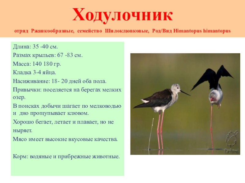 отряд Ржанкообразные, семейство Шилоклювковые, Род/Вид Himantopus himantopus
