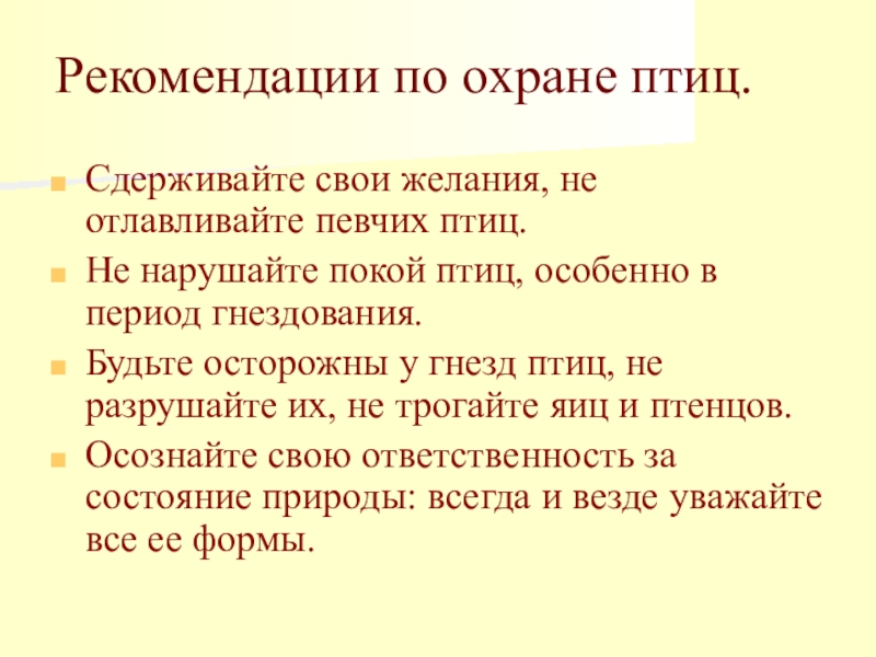 Сдерживайте свои желания, не отлавливайте певчих птиц.