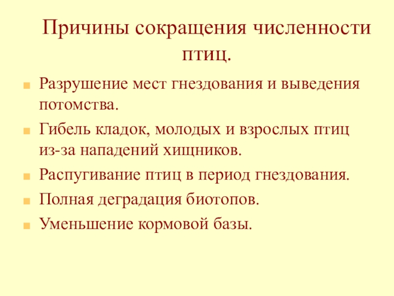 Причины изменения численности: ухудшение условий гнездования, усиления фактора беспокойства; уничтожение птиц человеком.