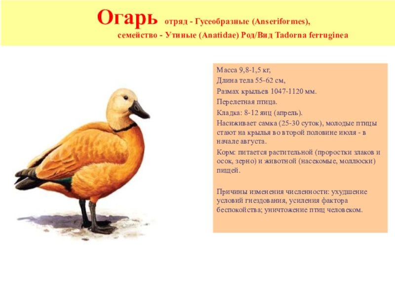 семейство - Утиные (Anatidae) Род/Вид Tadorna ferruginea