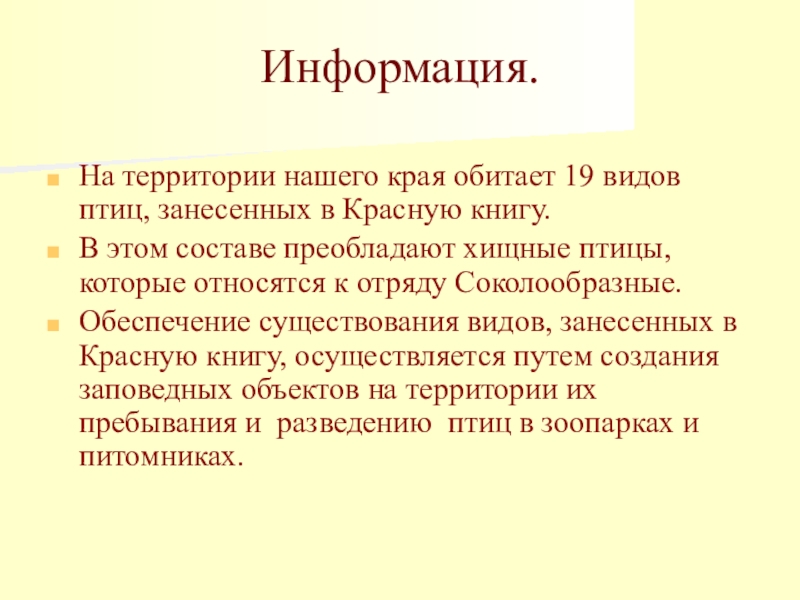 На территории нашего края обитает 19 видов птиц, занесенных в