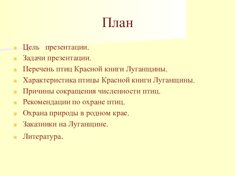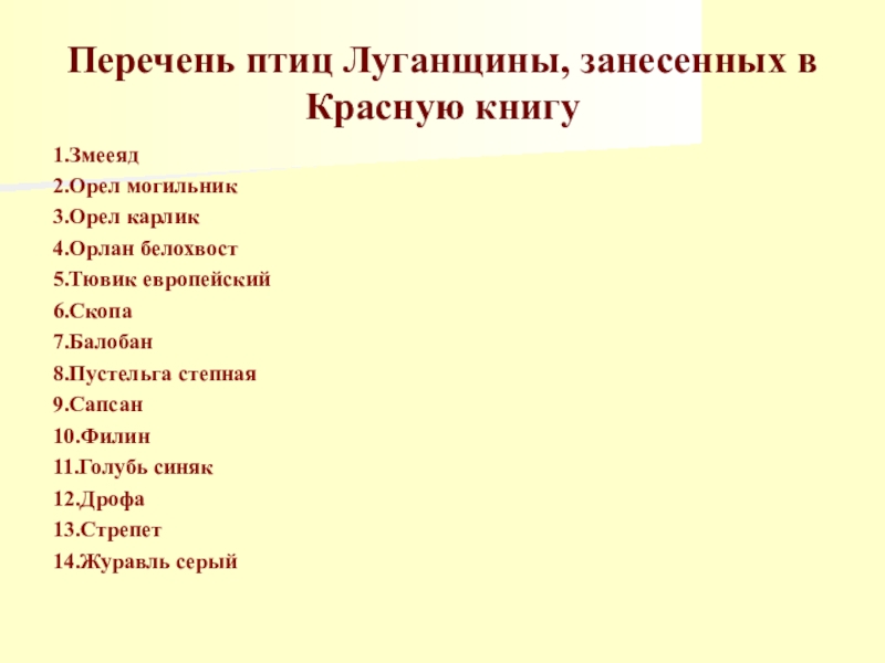 Слайд 5Перечень птиц Луганщины, занесенных в Красную книгу