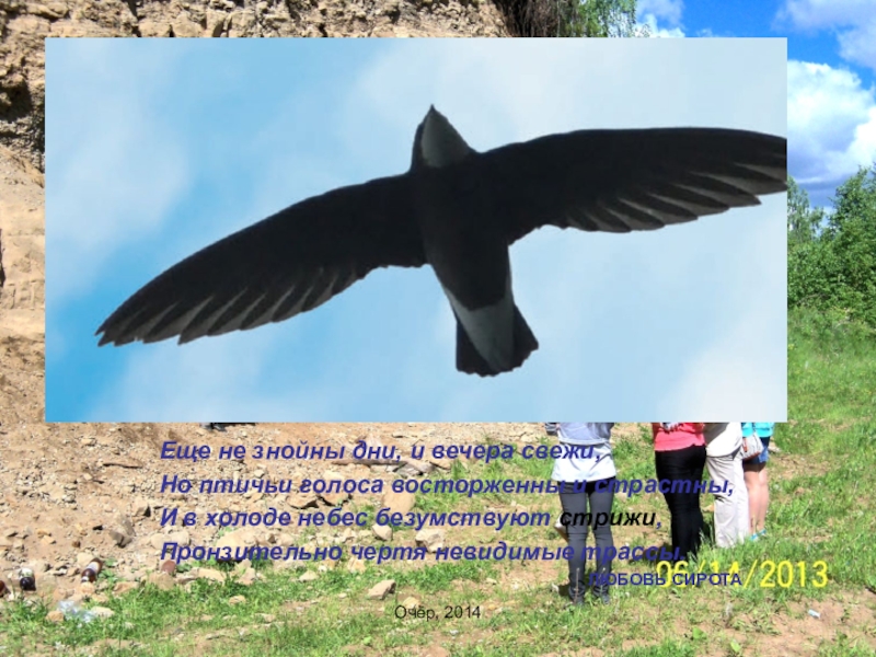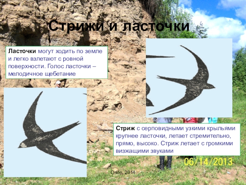 Стриж с серповидными узкими крыльями крупнее ласточки, летает стремительно, прямо, высоко. Стриж летает с громкими визжащими звуками