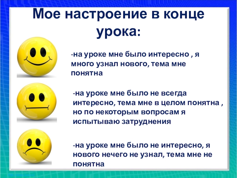 -на уроке мне было не всегда интересно, тема мне в целом понятна , но по некоторым вопросам я испытываю затруднения