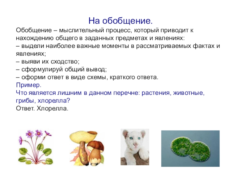 Обобщение – мыслительный процесс, который приводит к нахождению общего в