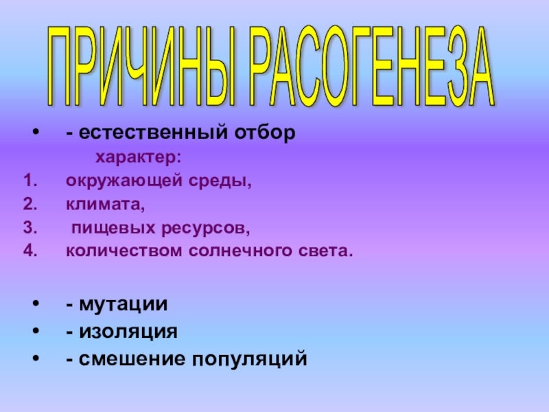 ПРИЧИНЫ РАСОГЕНЕЗА
