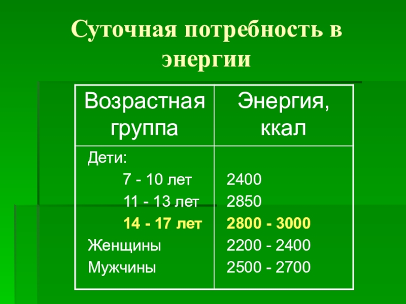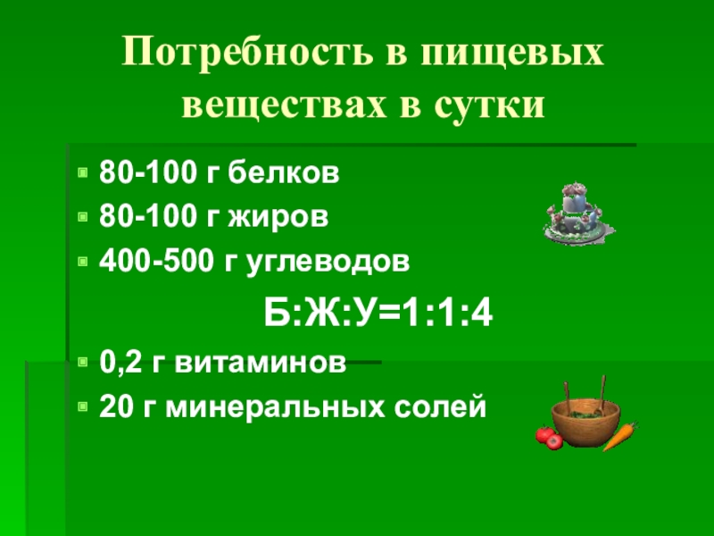 Натрий (соль, соленые мясные и рыбные продукты) – 4 – 5 г.