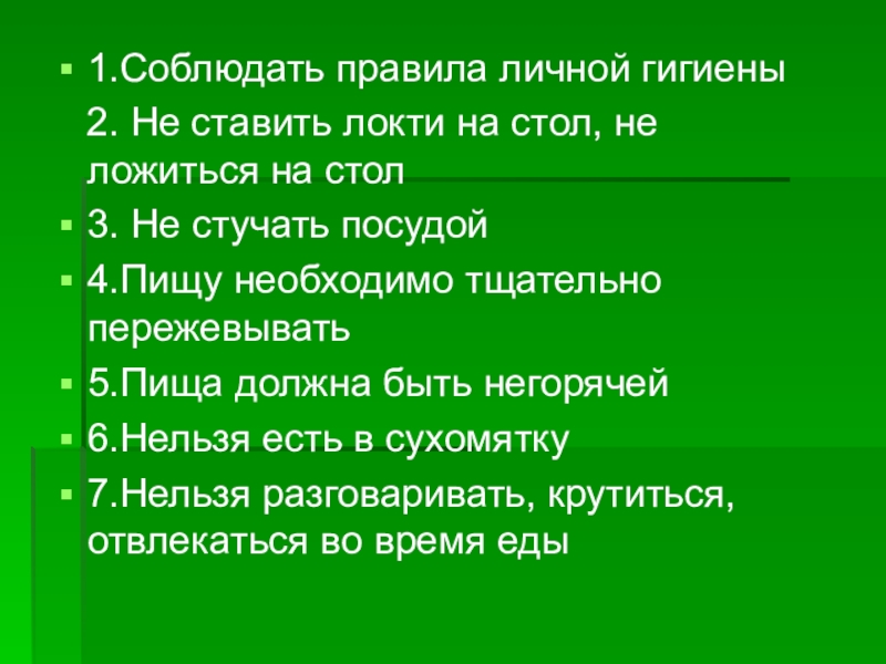 7.Нельзя разговаривать, крутиться, отвлекаться во время еды