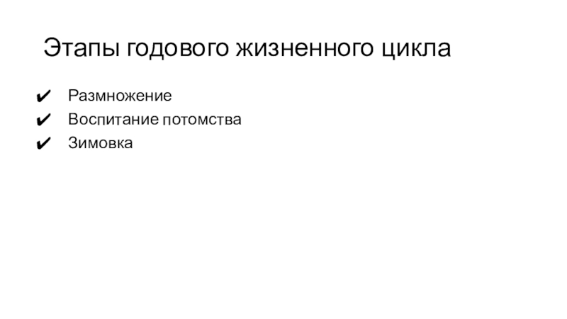 Этапы годового жизненного циклаРазмножениеВоспитание потомстваЗимовка