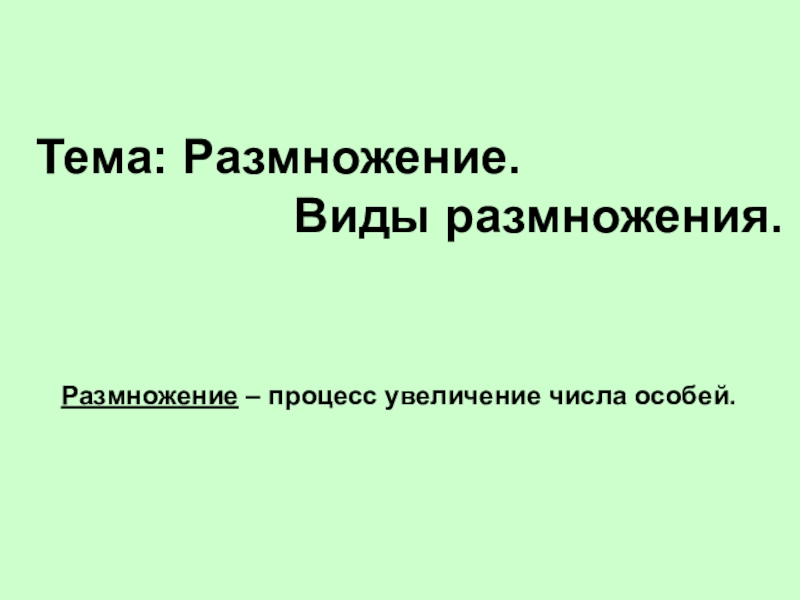 Размножение – процесс увеличение числа особей.