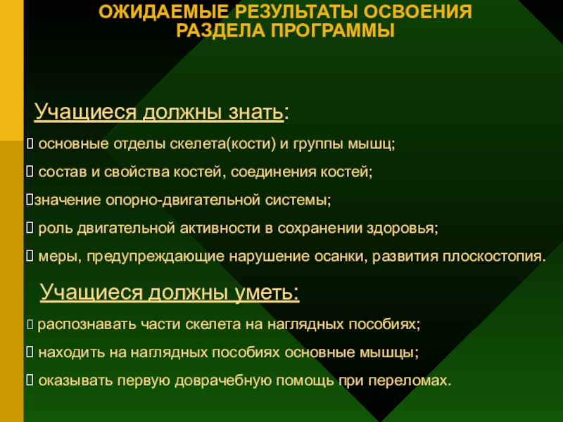 Слайд 11ОЖИДАЕМЫЕ РЕЗУЛЬТАТЫ ОСВОЕНИЯ РАЗДЕЛА ПРОГРАММЫ