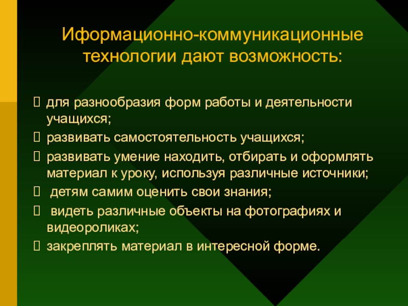 Слайд 13Иформационно-коммуникационные технологии дают возможность: