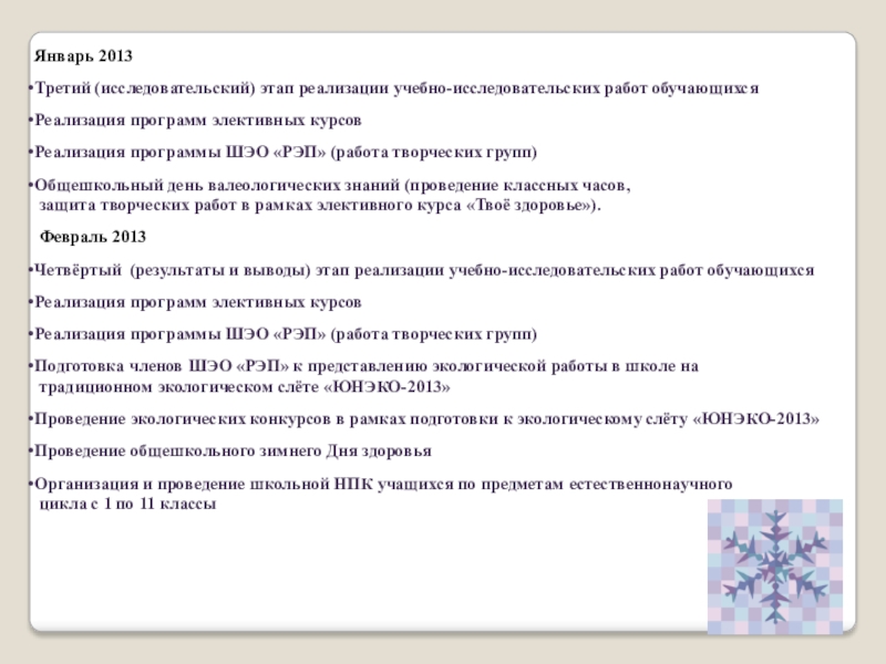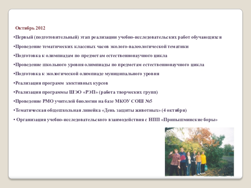 Утверждение программы ШЭО «РЭП», плана работы ШЭО на 2012-2013 учебный год и начало реализации (формирование творческих групп)