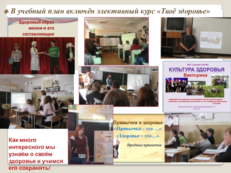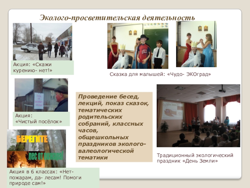 Проведение бесед, лекций, показ сказок, тематических родительских собраний, классных часов, общешкольных праздников эколого-валеологической тематики
