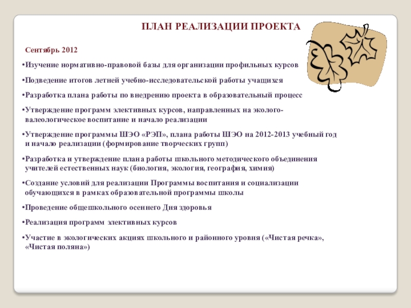 Разработка плана работы по внедрению проекта в образовательный процесс