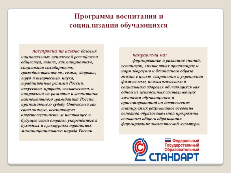 формирование и развитие знаний, установок, личностных ориентиров и норм здорового и безопасного образа жизни с целью сохранения и укрепления физического, психологического и социального здоровья обучающихся как одной из ценностных составляющих личности обучающегося и ориентированной на достижение планируемых результатов освоения основной образовательной программы основного общего образования формирование экологической культуры.