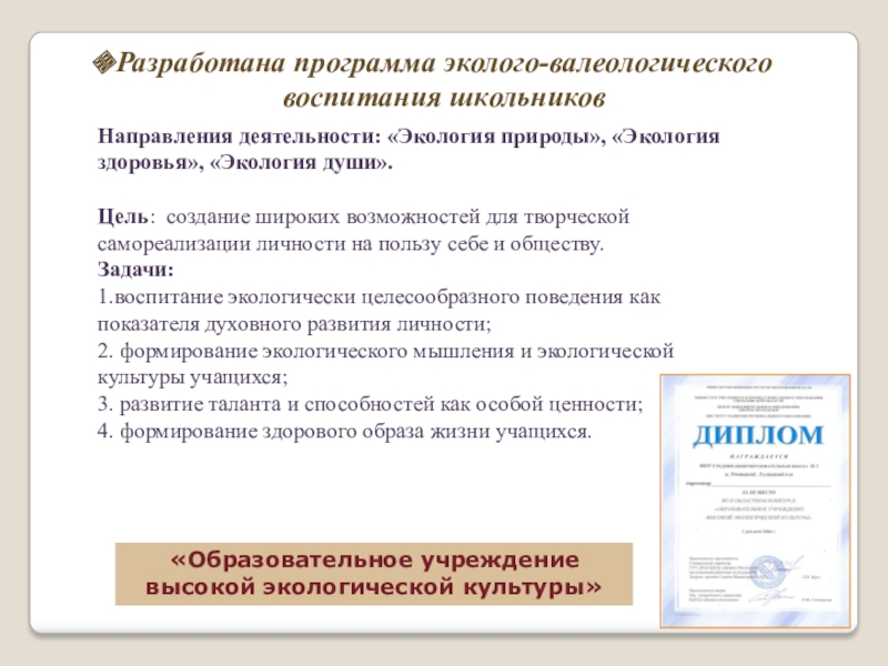 формирование основ экологической культуры соответствующей современному уровню экологического мышления, развитие опыта экологически ориентированной рефлексивно-оценочной и практической деятельности в жизненных ситуациях;