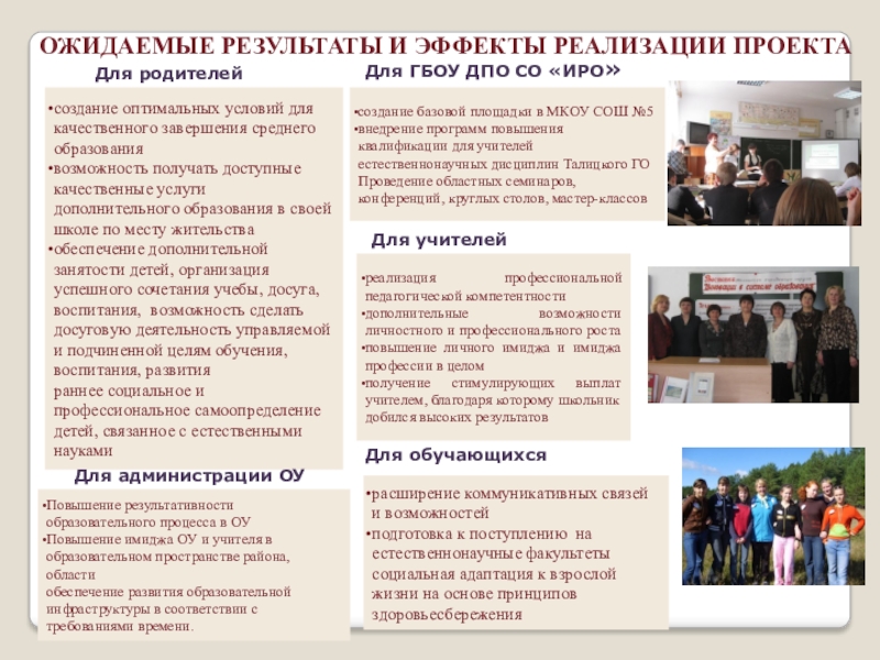 Организация базовой площадки ИРО на базе МКОУ СОШ №5 даст возможность вовлечь в исследовательские проекты и творческие занятия не только учащихся школы, но желающих заниматься углублённо биологией учащихся других школ