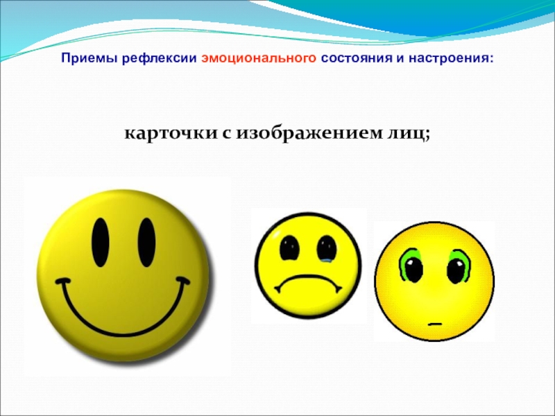 Слайд 6Приемы рефлексии эмоционального состояния и настроения: