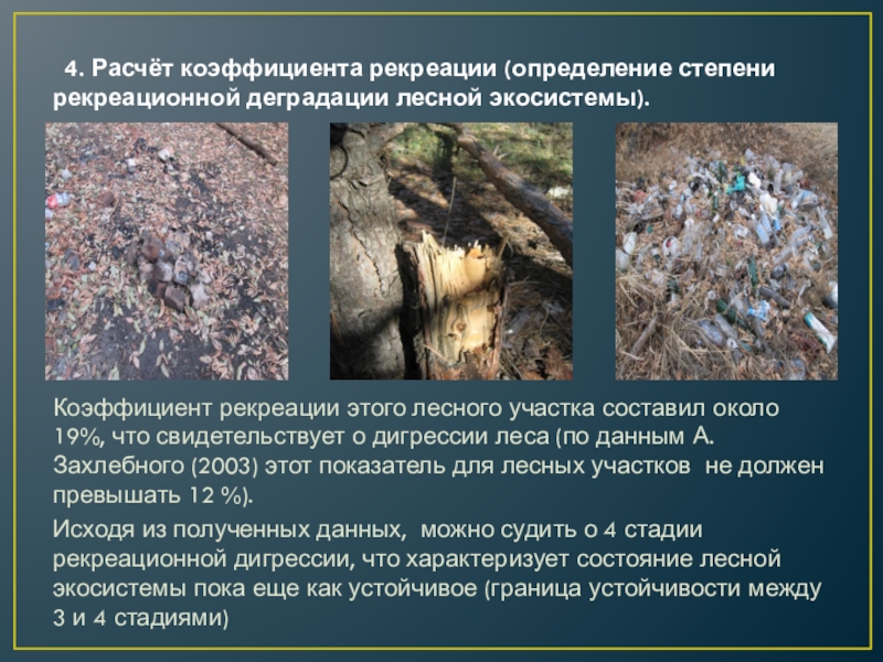 Определить коэффициент рекреации, рекреационную нагрузку данной территории в исследуемый период.