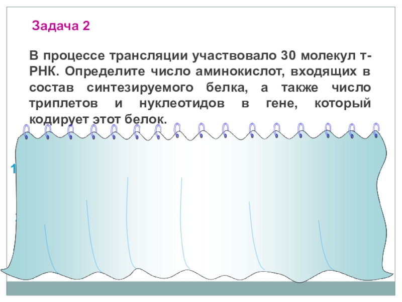2. одну аминокислоту кодирует триплет нуклеотидов, значит, 30 аминокислот кодируют 30 триплетов;