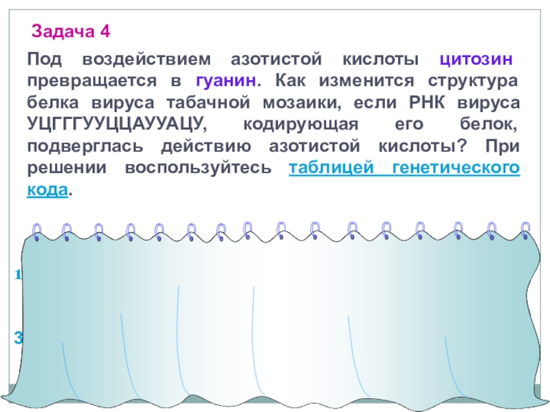 3. количество нуклеотидов в гене, кодирующем белок из 30 аминокислот - 30 х 3 = 90.