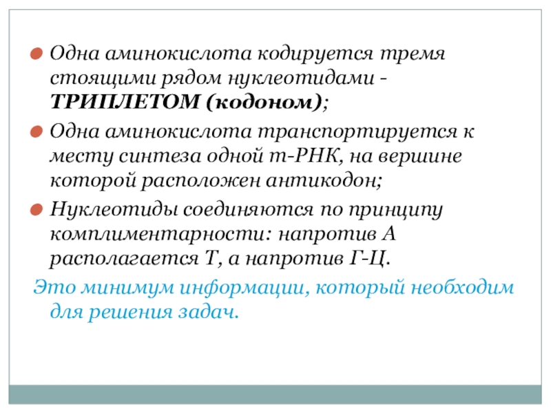 следовательно, 30 т-РНК соответствуют 30 аминокислотам, и белок состоит из 30 аминокислот;