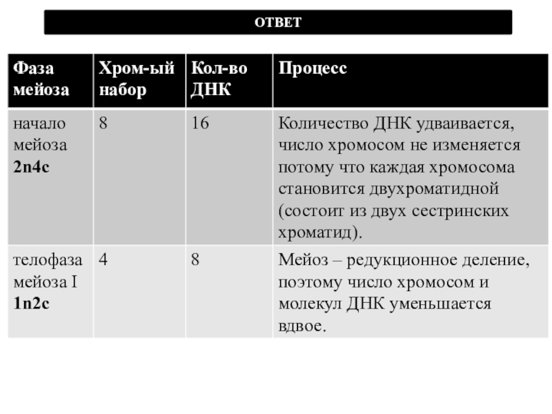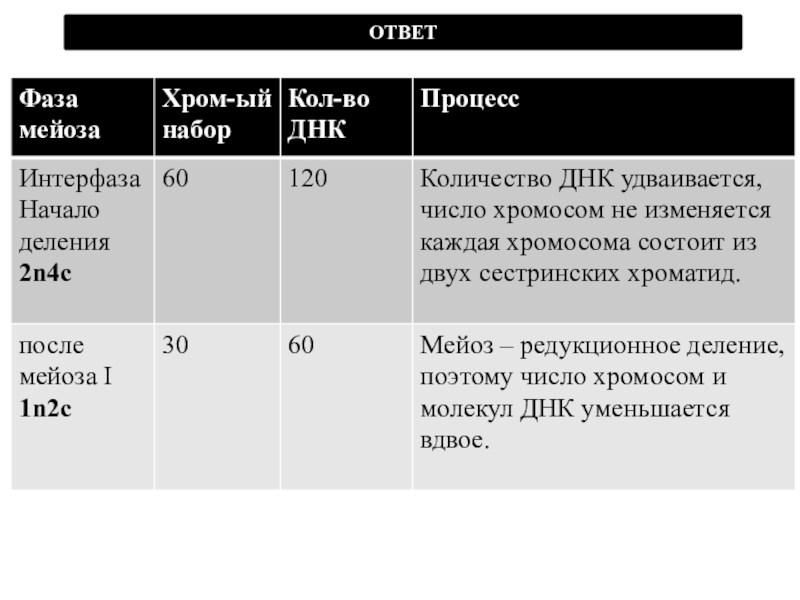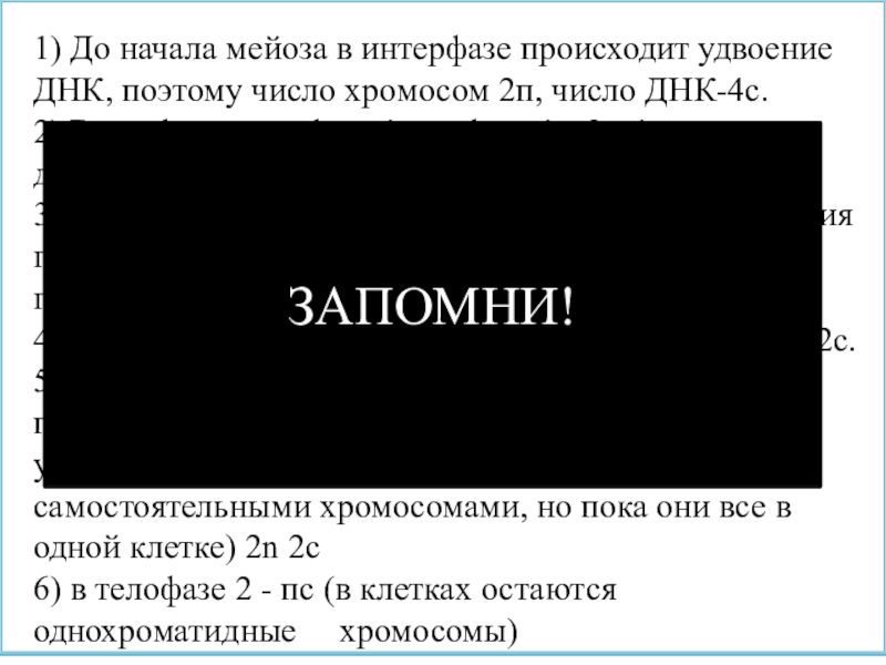 Слайд 141) До начала мейоза в интерфазе происходит удвоение ДНК, поэтому число