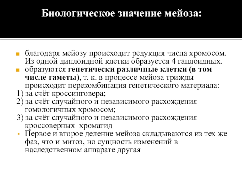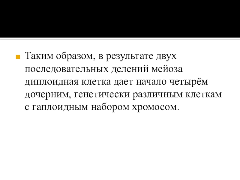 Слайд 13Таким образом, в результате двух последовательных делений мейоза диплоидная клетка дает