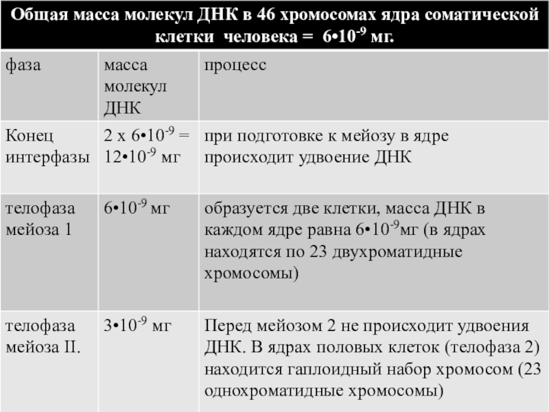 Общая масса молекул ДНК в 46 хромосомах ядра соматической клетки