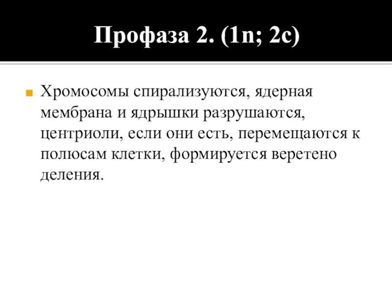 Хромосомы спирализуются, ядерная мембрана и ядрышки разрушаются,