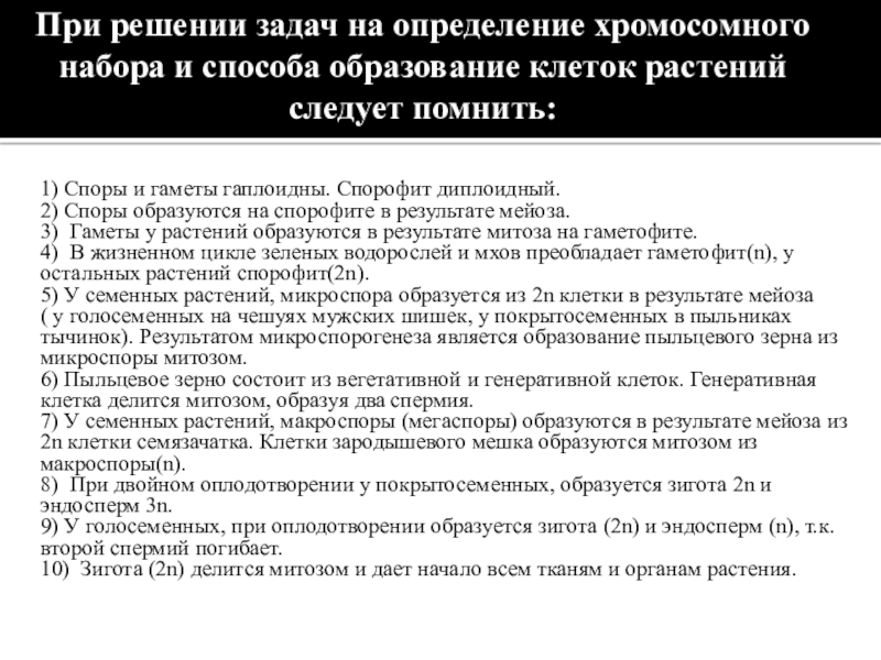 Слайд 22При решении задач на определение хромосомного набора и способа образование клеток