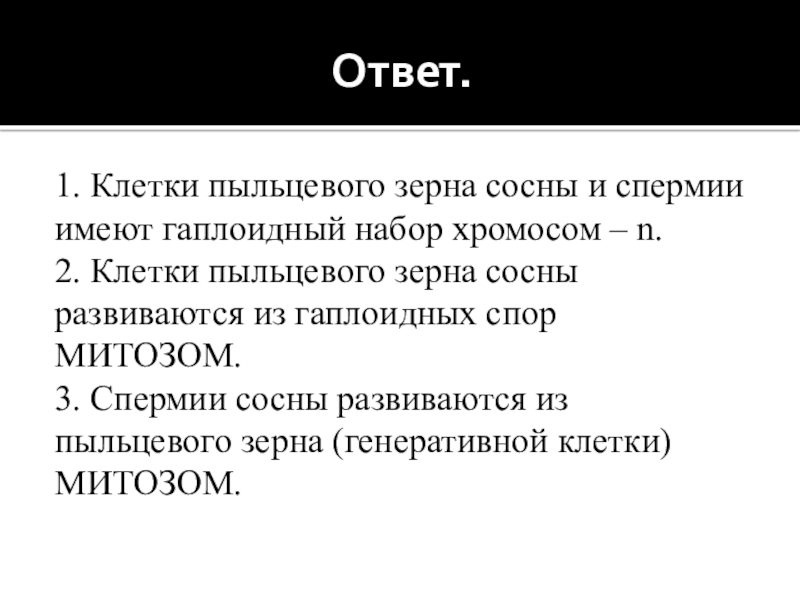 1. Клетки пыльцевого зерна сосны и спермии имеют гаплоидный набор хромосом