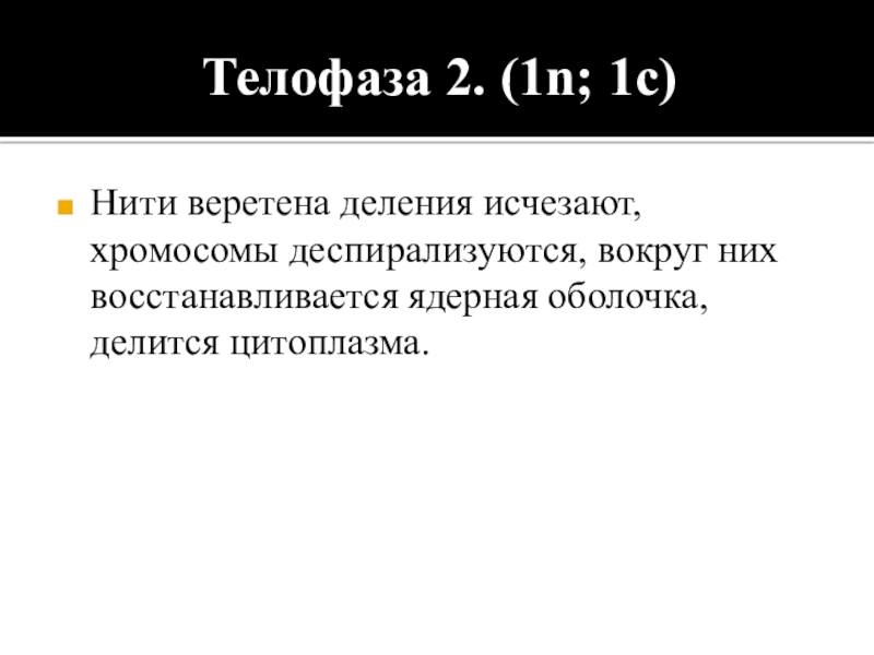 Нити веретена деления исчезают, хромосомы деспирализуются, вокруг