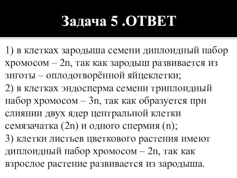 Какой хромосомный набор характерен для клеток зародыша и эндосперма семени,