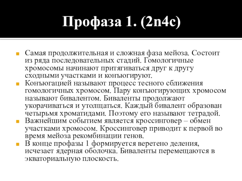 Самая продолжительная и сложная фаза мейоза. Состоит из