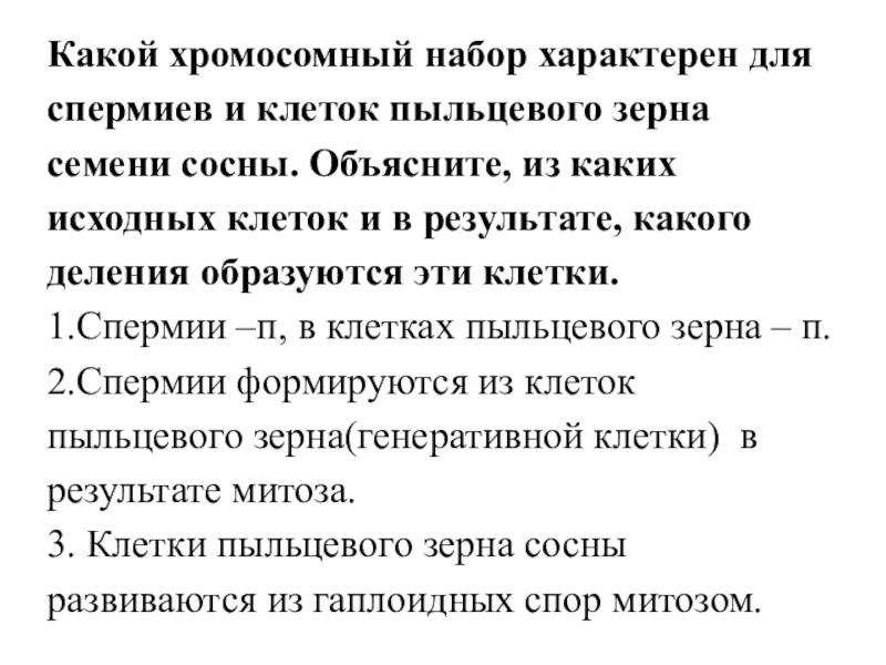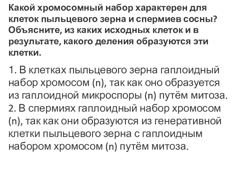 Слайд 21Какой хромосомный набор характерен для клеток пыльцевого зерна и спермиев сосны?