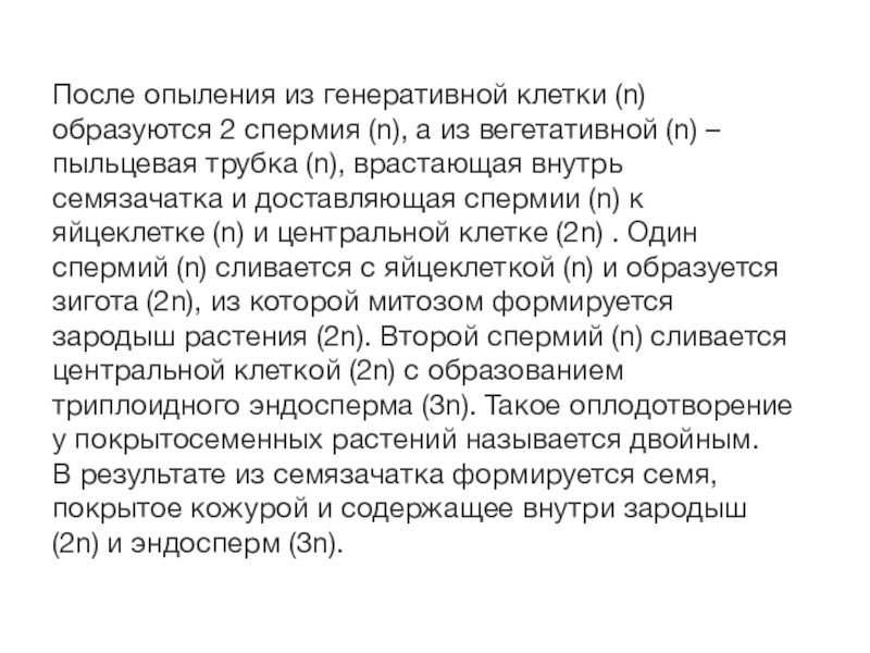 Слайд 7После опыления из генеративной клетки (n) образуются 2 спермия (n), а