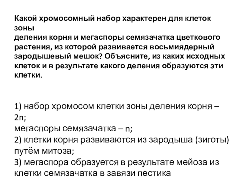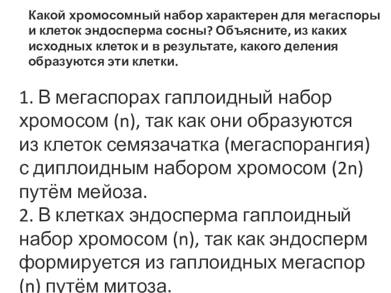 Слайд 20Какой хромосомный набор характерен для мегаспоры и клеток эндосперма сосны? Объясните,