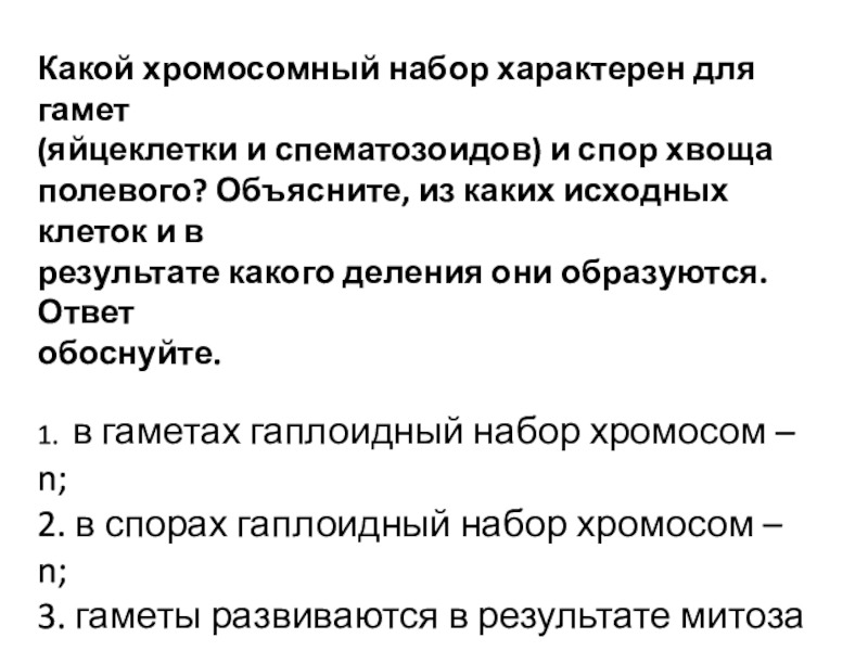 Слайд 10Какой хромосомный набор характерен для гамет