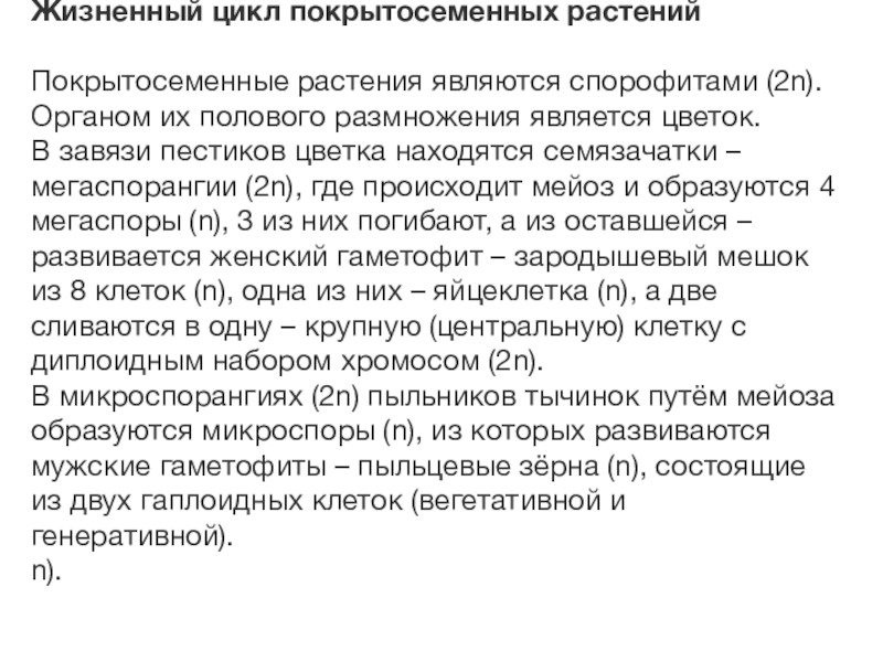 Покрытосеменные растения являются спорофитами (2n). Органом их полового