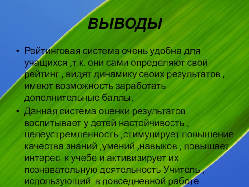 Рейтинговая система очень удобна для учащихся ,т.к. они сами определяют свой