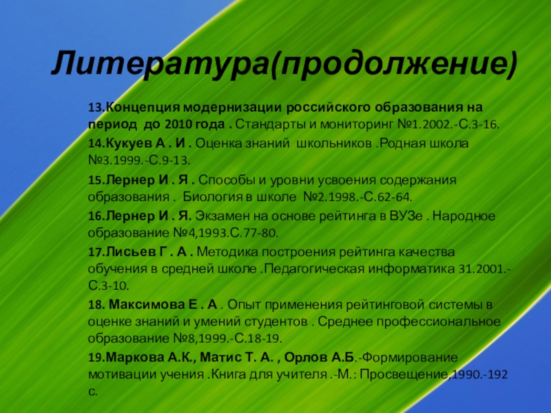 16.Лернер И . Я. Экзамен на основе рейтинга в ВУЗе . Народное образование №4,1993.С.77-80.