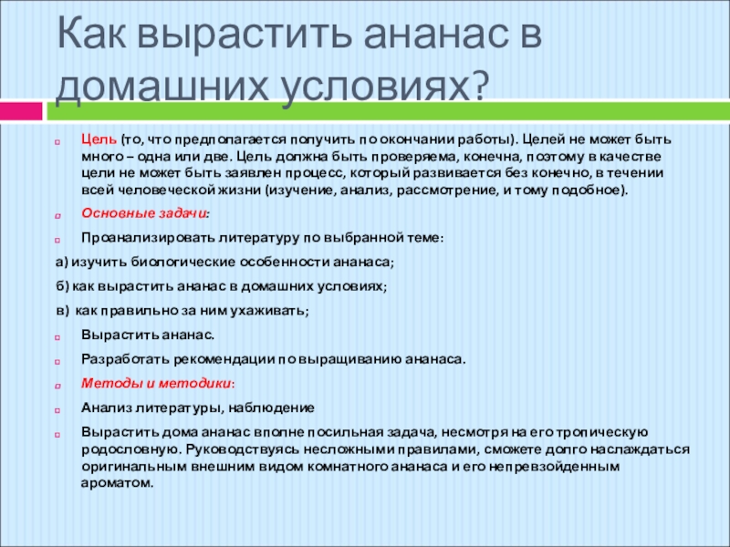 Вырастить дома ананас вполне посильная задача, несмотря на его тропическую родословную. Руководствуясь несложными правилами, сможете долго наслаждаться оригинальным внешним видом комнатного ананаса и его непревзойденным ароматом.