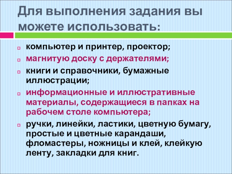 информационные и иллюстративные материалы, содержащиеся в папках на рабочем столе компьютера;