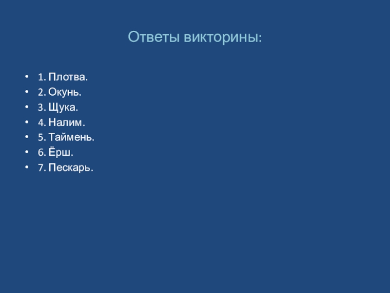 Слайд 23Шуточная викторина по теме: «Рыбы уральских водоемов»
