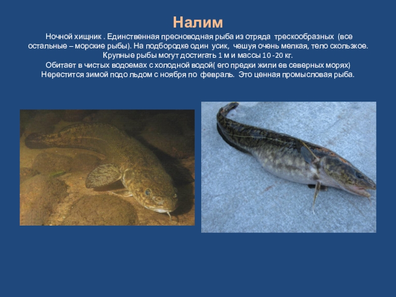 Ночной хищник . Единственная пресноводная рыба из отряда трескообразных
