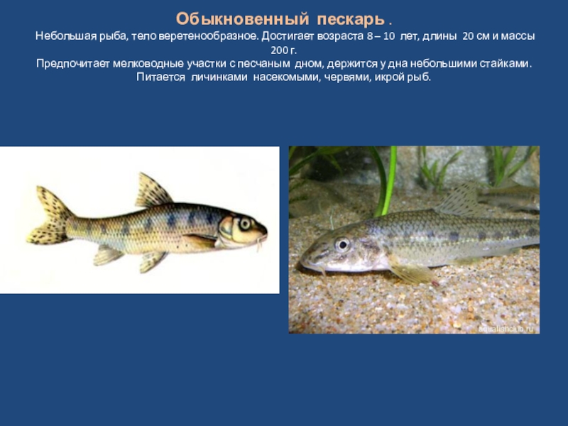 7. Мелкая рыбешка, любит мелководья с песчаным дном, каменистые перекаты. По характеру – обыкновенный обыватель, неуверенный в завтрашнем дне, Трусоват. Любит отсиживаться под камешком. Любимая пища – навозный червяк.